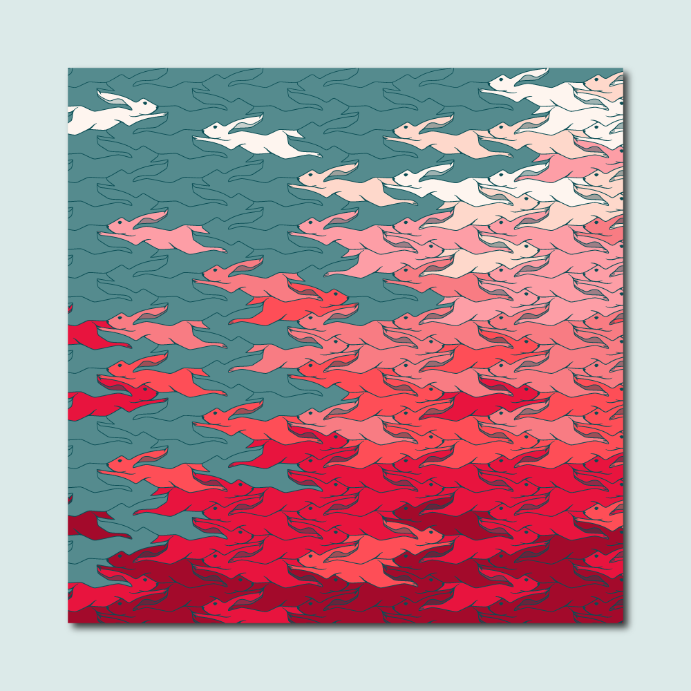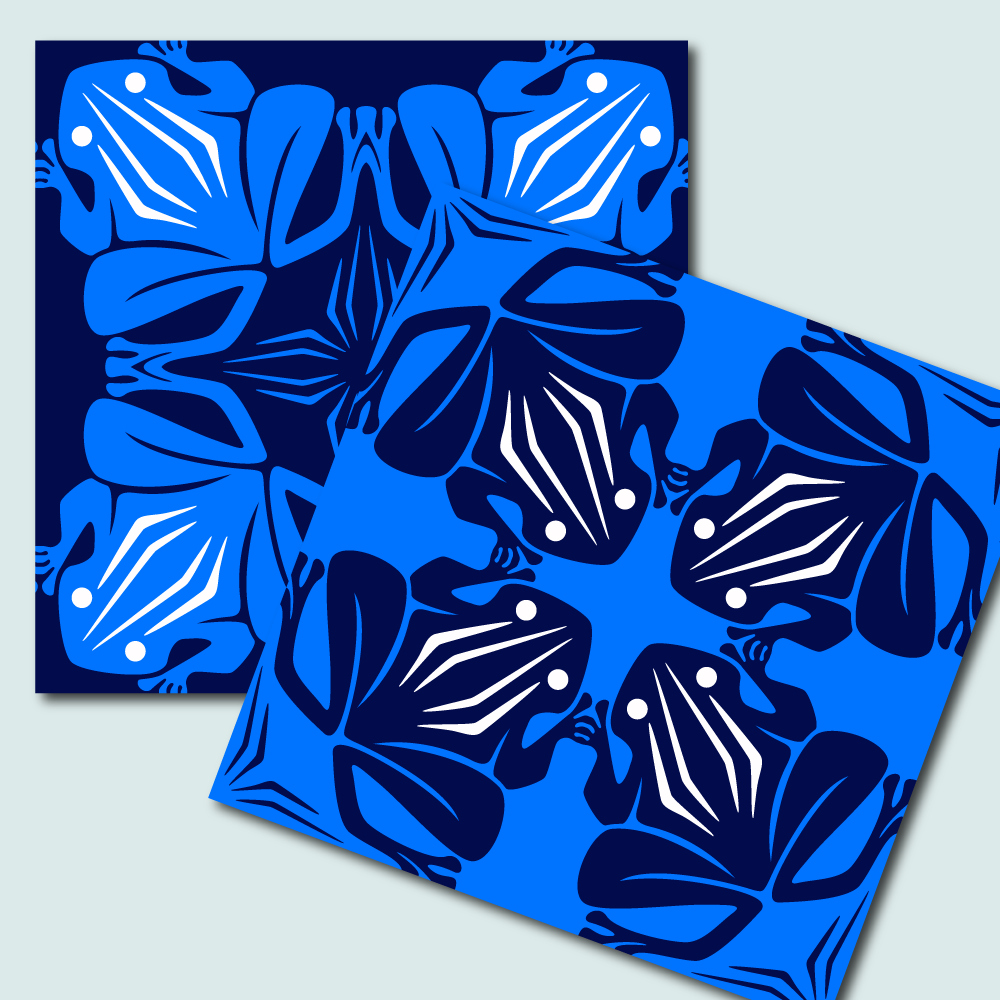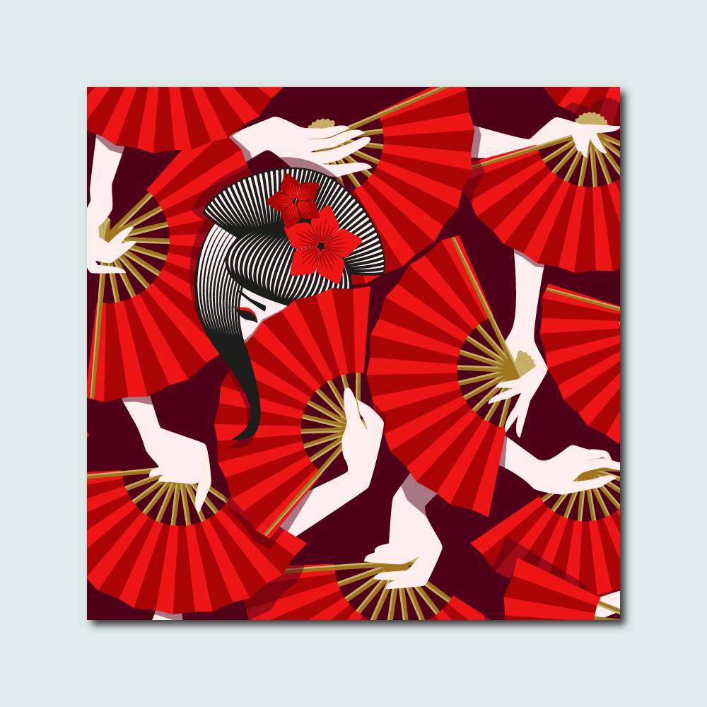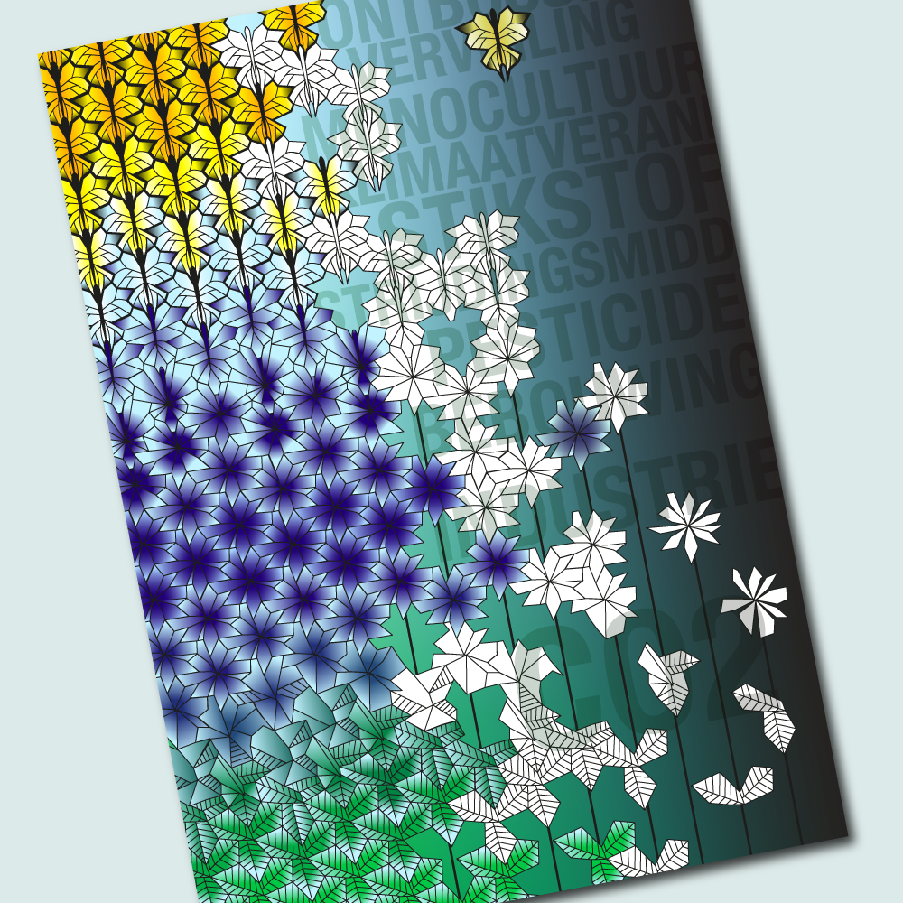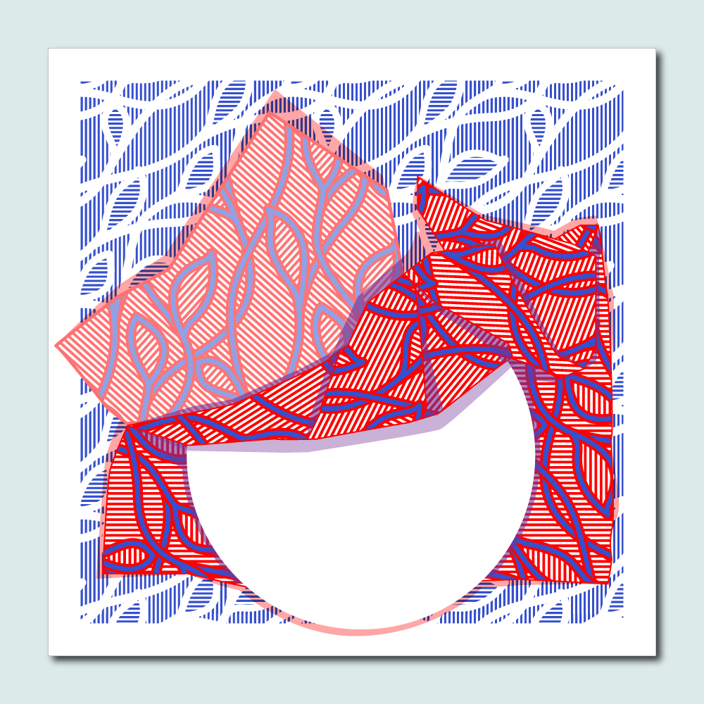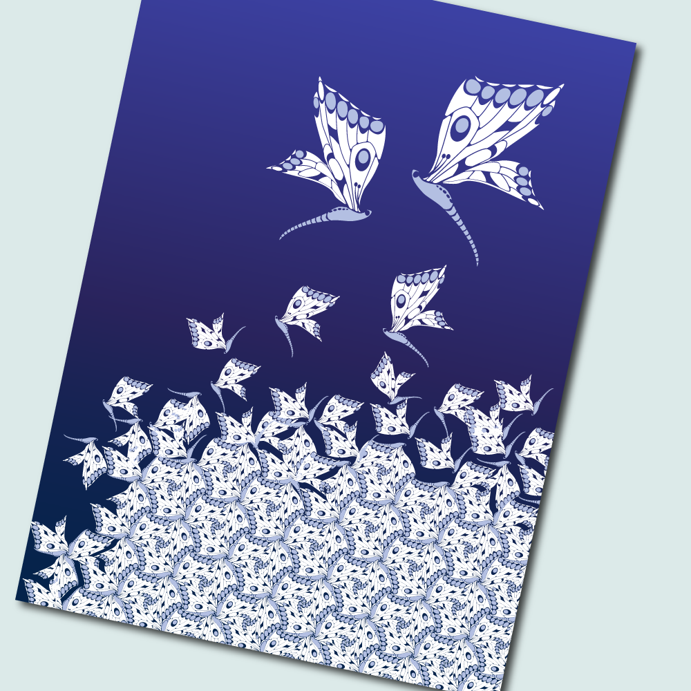The illustrations often start from a pattern. By placing parts of the pattern in a frame and adding or removing elements or by incorporating the pattern in an illustration.